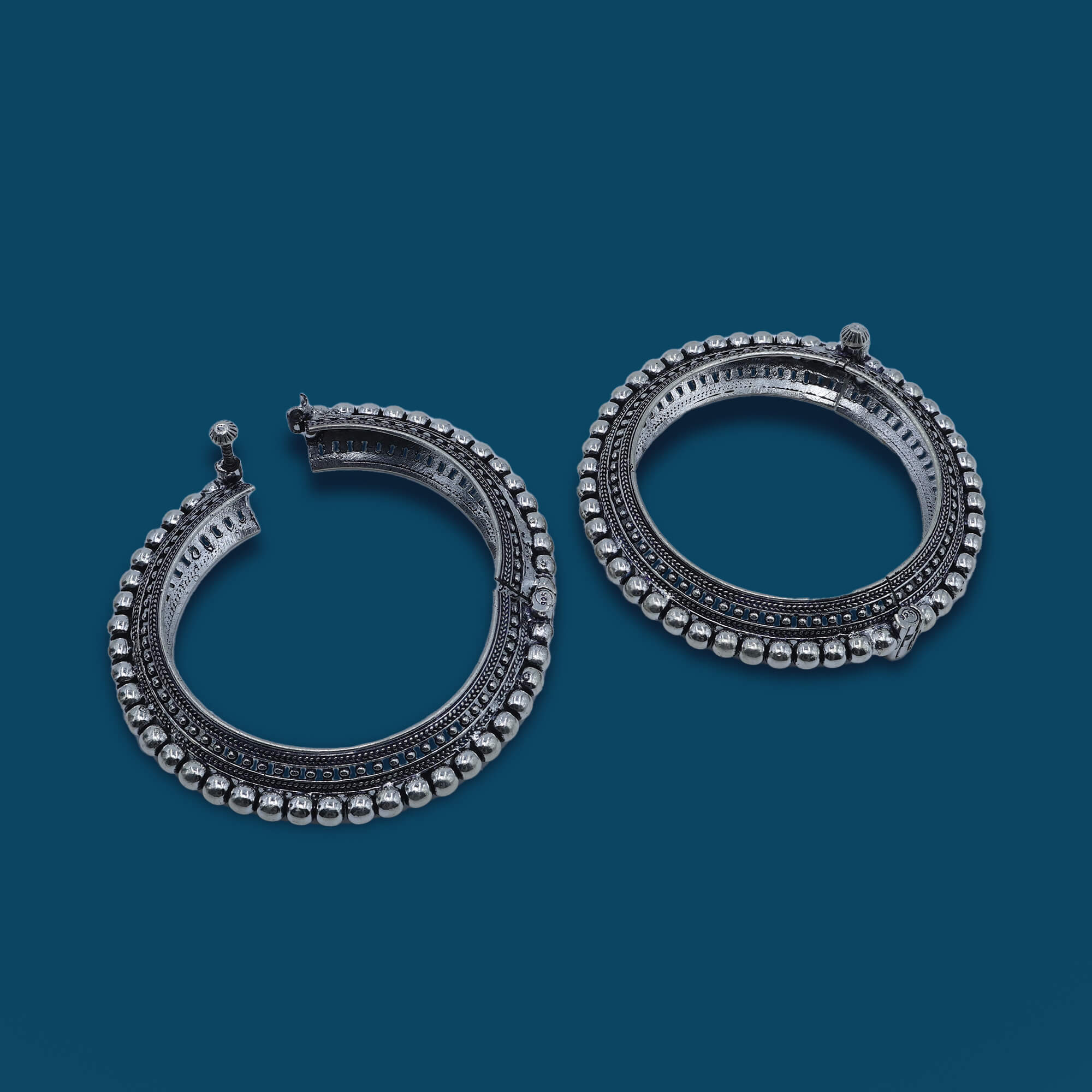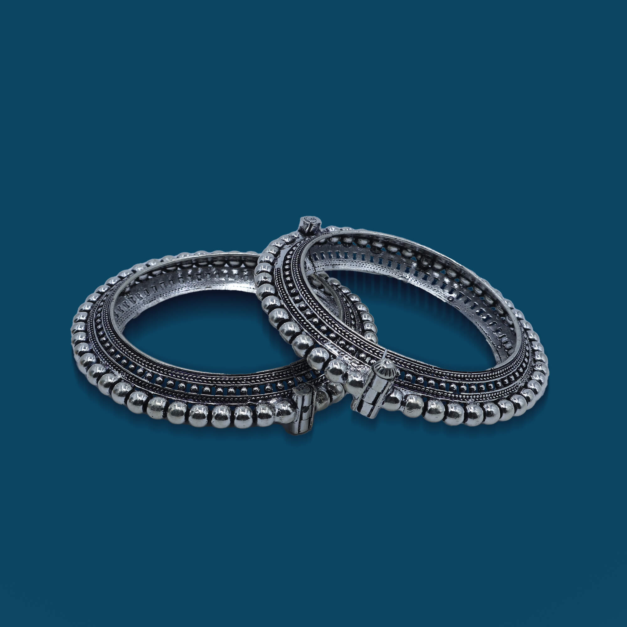 Inspired by royal heritage, the Oxidized Rajwada Kangan combines timeless Indian craftsmanship with a touch of vintage charm. Made from high-quality 925 sterling silver with an oxidized finish, this kangan features intricate traditional designs, evoking the grandeur and elegance of Rajwada (royal) jewelry. Its antique look, with delicate carvings and ornate patterns, adds a regal touch to any outfit. Ideal for festive occasions, weddings, or special events, the Oxidized Rajwada Kangan brings a piece of royal history to your jewelry collection.