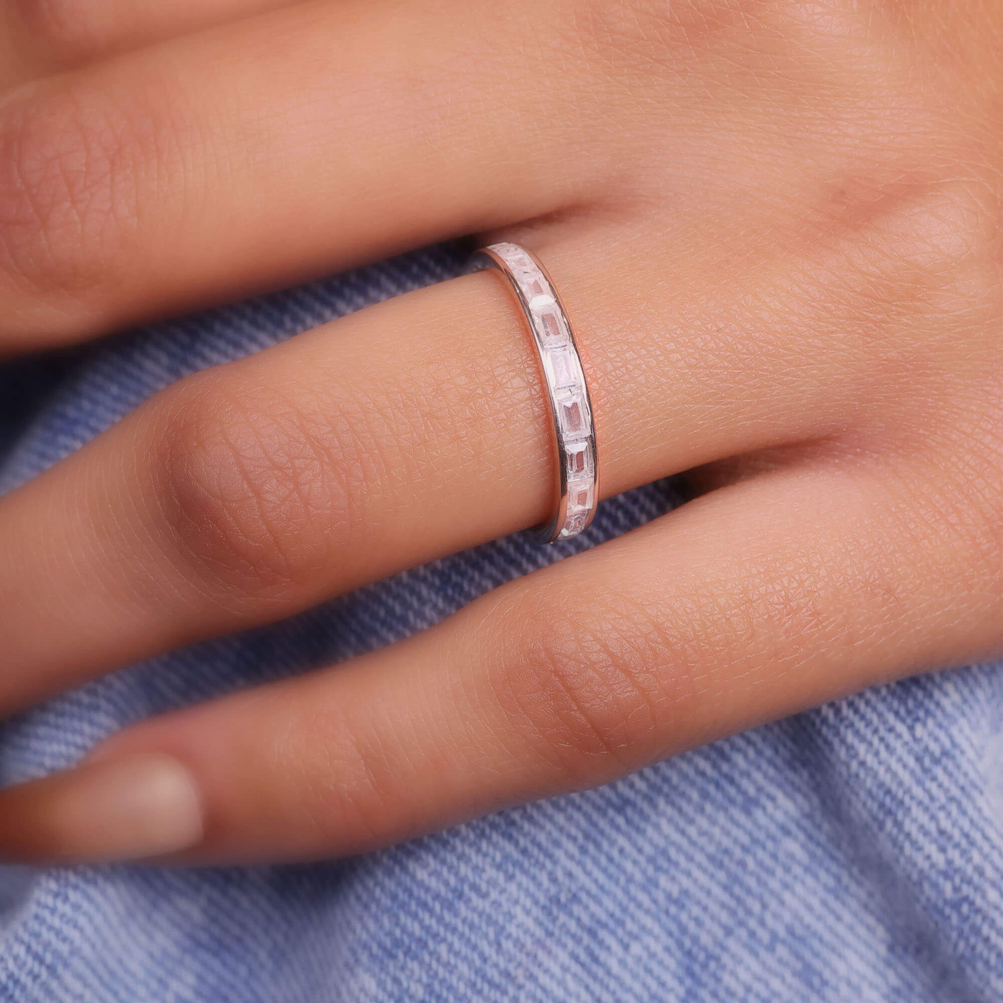 "Delicate, refined, and effortlessly elegant—the Lumière Band Ring is a timeless piece designed for everyday luxury. Crafted in pure 925 sterling silver, this minimal band is adorned with finely set micro white stones, creating a subtle yet continuous sparkle that catches the light beautifully. Its sleek and lightweight design makes it perfect for daily wear, whether worn alone for a clean, sophisticated look or stacked with other rings for a more styled statement. The smooth finish and skin-friendly quality ensure all-day comfort, while the understated brilliance adds just the right touch of shine to any outfit. A true essential for modern minimalists, the Lumière Band Ring is the perfect blend of simplicity, elegance, and versatility—ideal for gifting or elevating your everyday style."