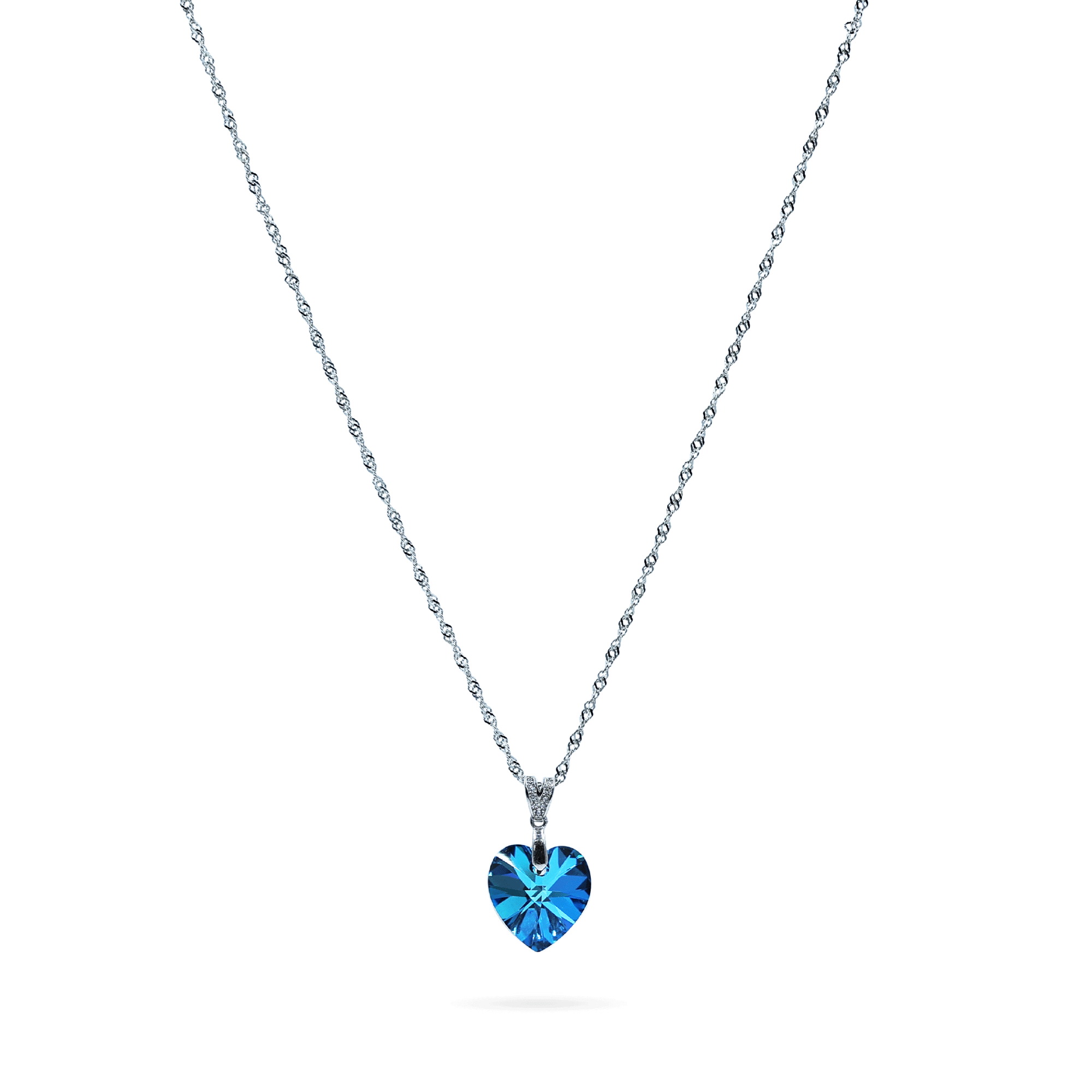 "Delicate and graceful, the Blue Crystal Heart Silver Chain is crafted in 925 sterling silver and features a sleek, lightweight chain paired with a heart-shaped blue crystal pendant that adds a touch of soft sparkle and charm. Designed for everyday comfort, this chain is perfect for daily wear, office styling, and romantic gifting. Its minimal yet expressive design makes it a beautiful symbol of love and elegance, suitable for all age groups."